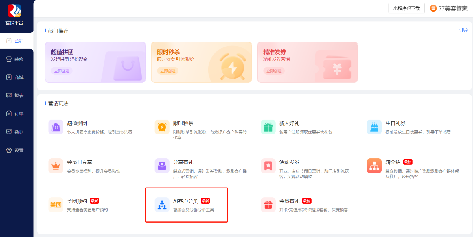 step1:客户端点击营销平台>>选择AI客户分类